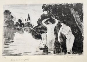 Delteil-Cailac n°196. Shapiro et Mélot p 23. Belle épreuve imprimée en brun-rouge sur vélin mince, de l’état unique. Pli diagonal marqué en tête. « Le dessin au vernis sur la plaque de zinc a été fait par Camille Pissarro mais la morsure par son fils Lucien… » Jean Cailac. Il existerait un tirage posthume de cette gravure, […]