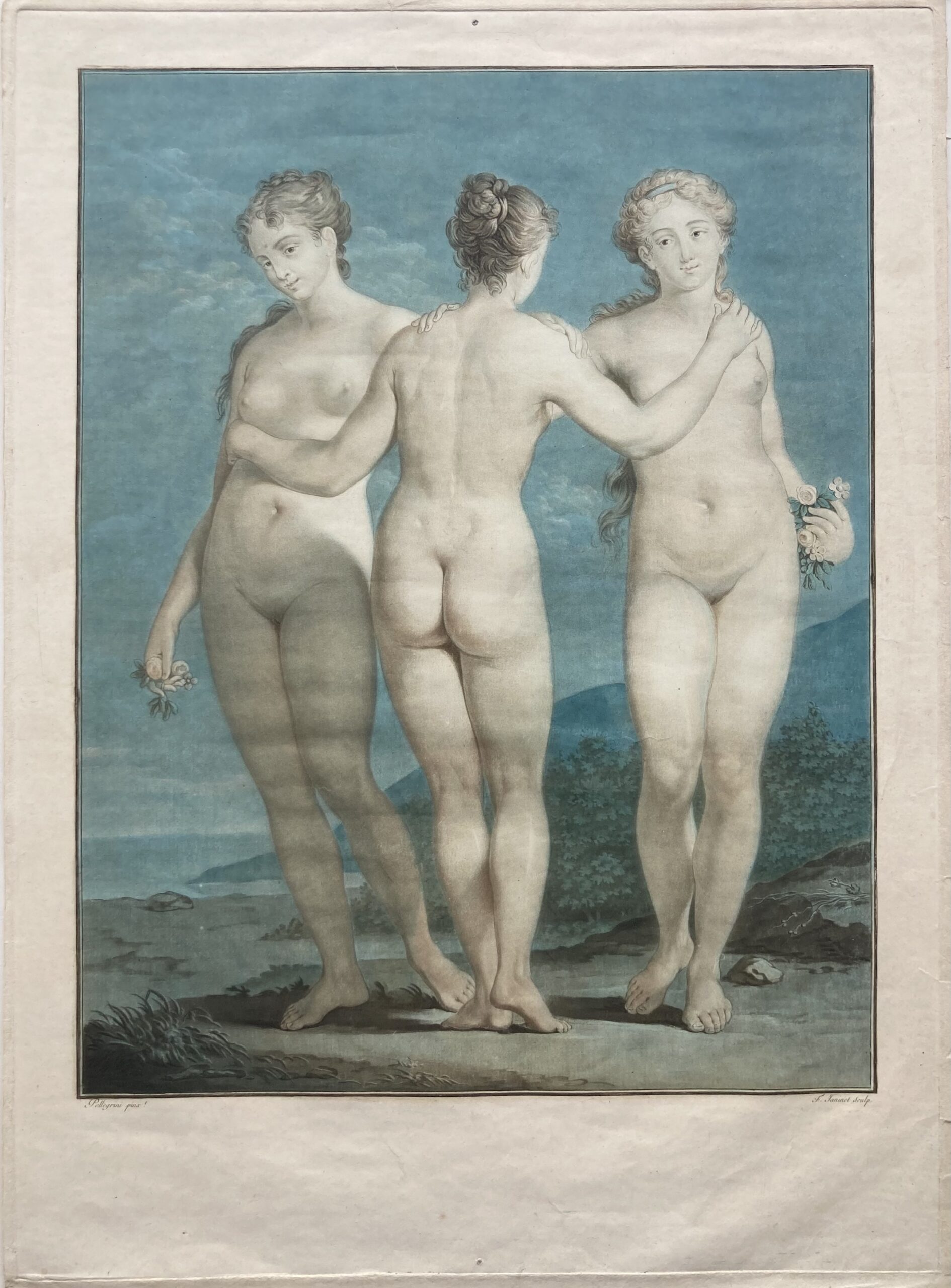 Gravure en manière de lavis imprimée en couleurs au repérage d'après Pellegrini.