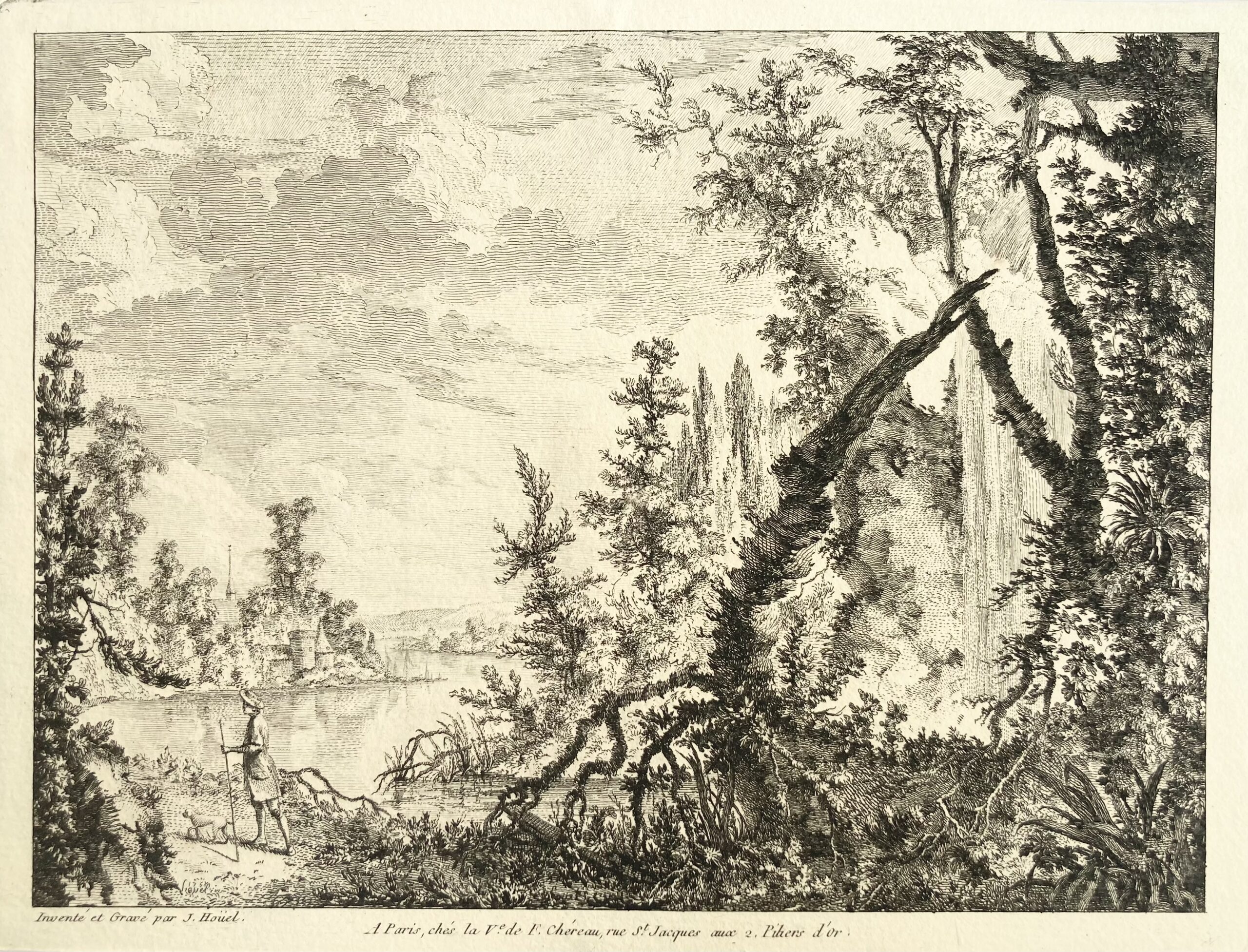 cf I.F.F. n°1-12 (lacune). Très belle épreuve. Planche d’une suite d’un “livre de paysages” comprenant douze planches. Oeuvre de jeunesse, notre gravure anticipe le paysage romantique de la fin du siècle et du siècle suivant.