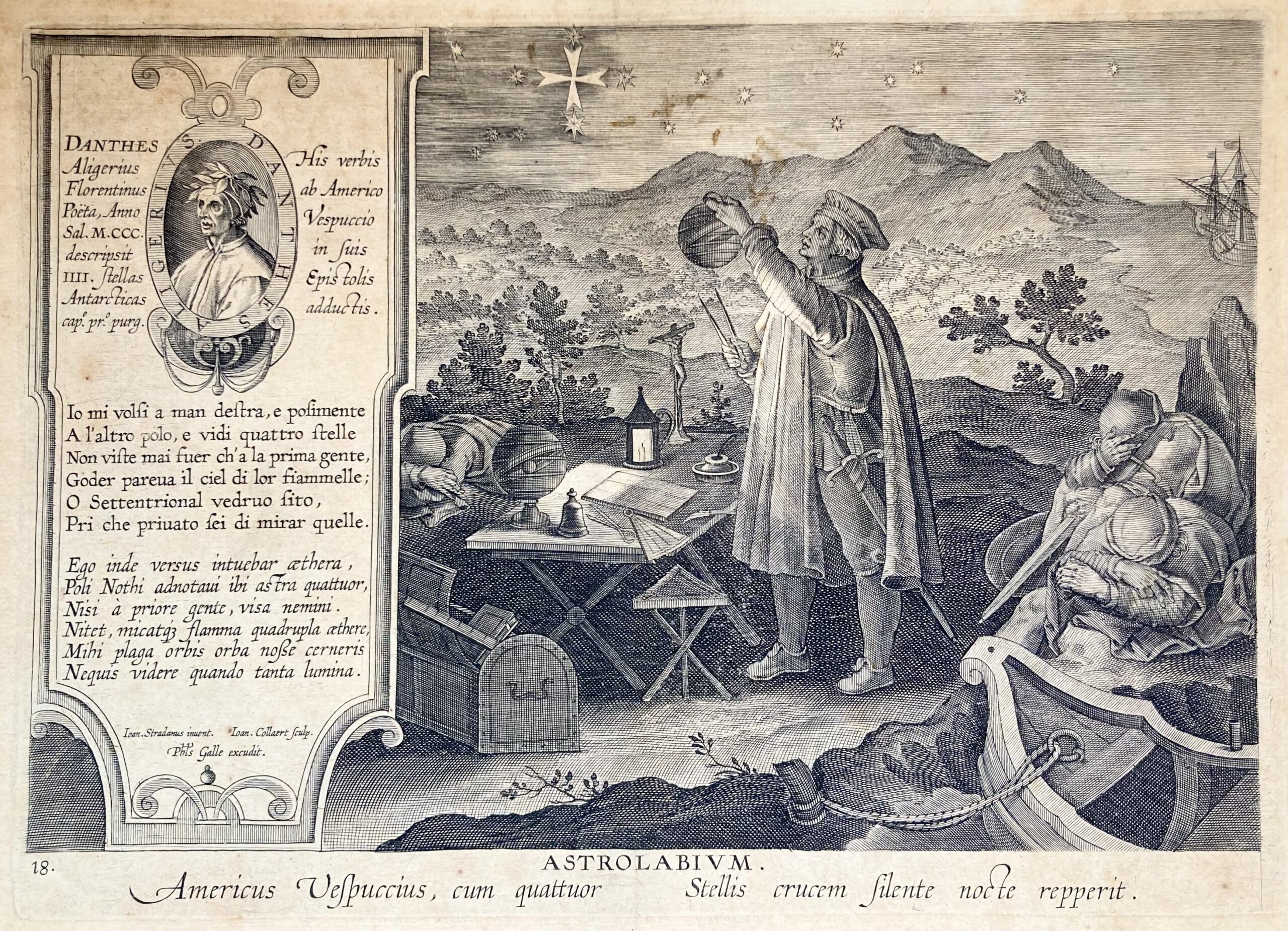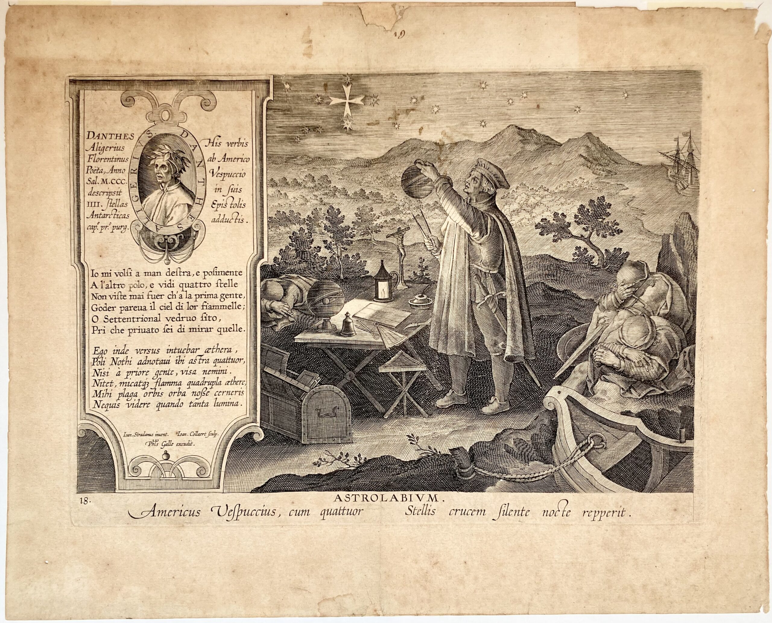 after Johannes STRADANUS – Amerigo Vespucci découvrant la Croix du Sud with an astrolabe