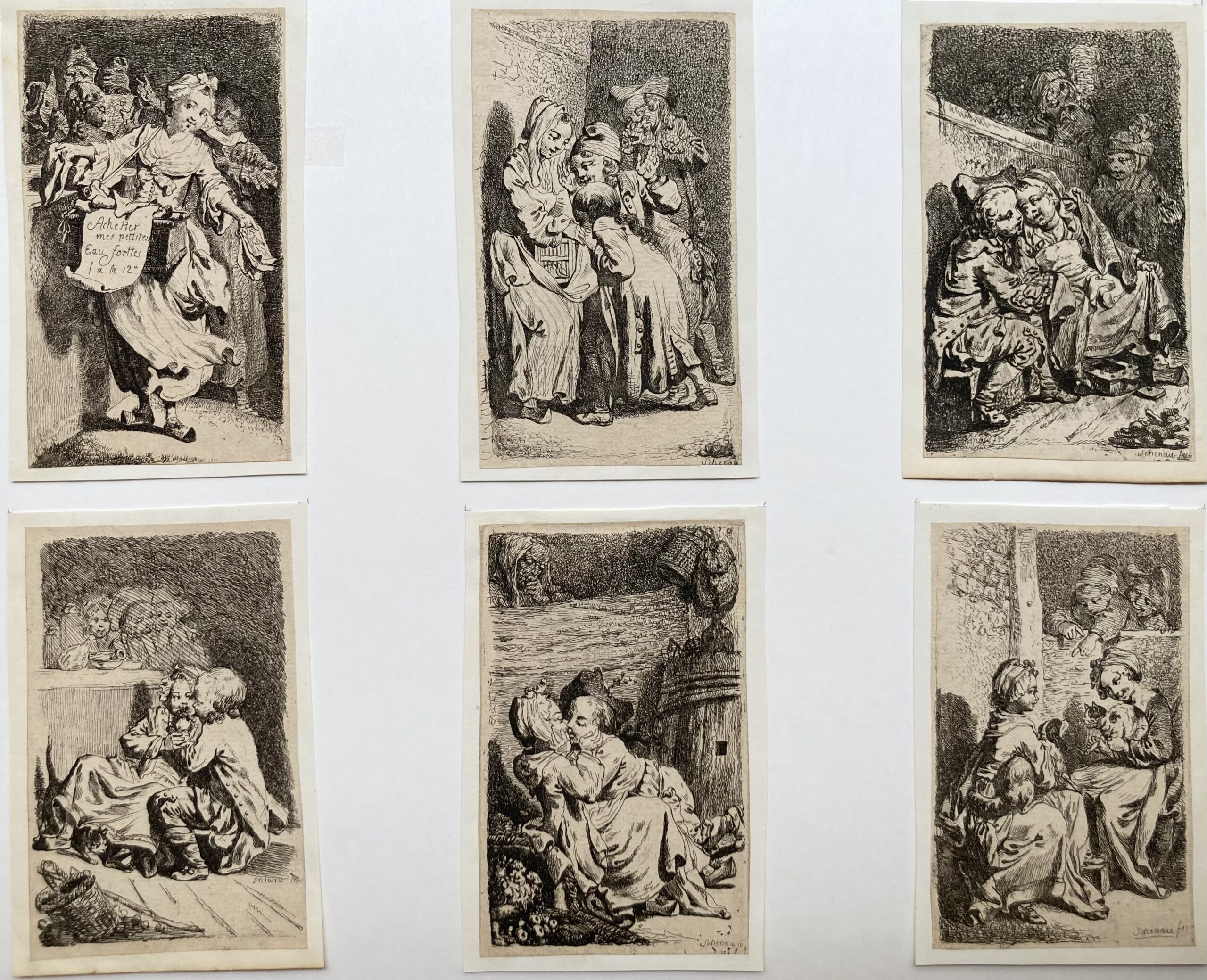 Exhib. “German Printmaking…” nr 9. Good impressions irregularly trimmed at the subject, of the only state (?). The engraved subjects seem just about complete but the margins of platemarks were trimmed; laid down. Complete set.