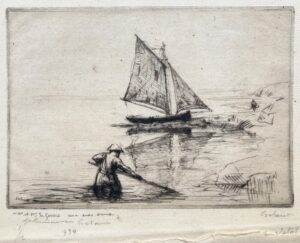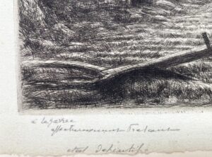 D. Frélaut nr 331 (XX/XX). Very good impression on old laid paper, of the last state, dédicated, signed, annotated and titled. Edition in this state of 50 impressions more some trials.
