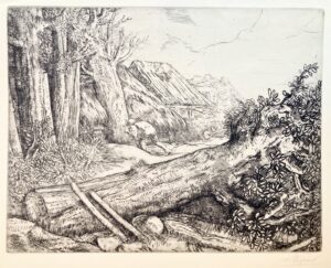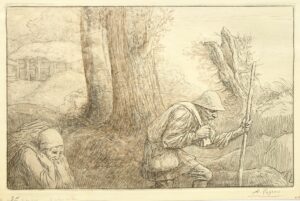 Malassis and Thibaudeau nr 565 (II/VI?); Bliss nr 565; I.F.F. nr 243. Very good impression on laid paper of 2nd state (of 6) before the platemark reduced, heightened by the artist and signed. Small margins. The first three states would have only been drawn in a total of 24 trials.
