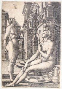 Belle épreuve imprimée en sanguine. Petites marges. Rare. Cette estampe semble inédite. Petit trou, traces de plis visibles et restes de papier de montage au verso, petite tache.