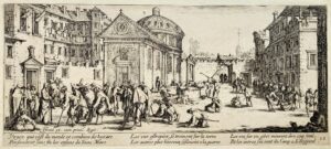 Lewis and Lewis nr 5 (IX/X). Good impression du 8 or 9e state (of 10), with G. J. de Rossi’s address. Breaks and folds, mostly marginal and on the edges; vertical median crease; two or three tiny tears renforcées au centre. Good margins. Edition end 17e or beginning 18e century. Watermark : lily flower in […]