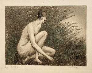 Baudicour nr 18. I.F.F. nr 15 (I/II). Very good impression trimmed at the platemark of first state (of 2), before the engraving number. Thin paper areas in the corners, some pronounced; tiny stains.