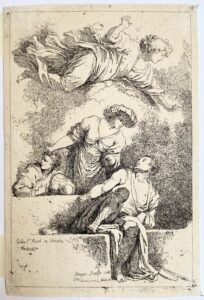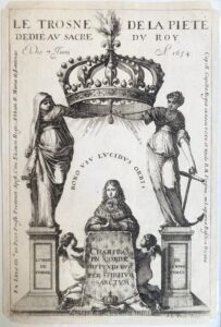 Préaud nr 230 (II/II). Good impression of 2nd state (of 2), with the inscriptions engraved on the edges. Some creases; tips of the marginal corners torn off. Ce cuivre a servi, en son premier état, à orner un placard typographié avec un poème de La Mesnardière, conseiller et maître d’hôtel ordinaire de sa Majesté. Il […]