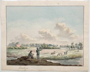 Dessin titré en bas à droite. Frédéric Faber, peintre d’animaux et de paysages, fonda une fabrique de porcelaines and was nommé peintre sur porcelaine de la Cour. Provenance : chevalier Camberlyn (selon une annotation au verso). Some rare piqûres; slight oxidation.