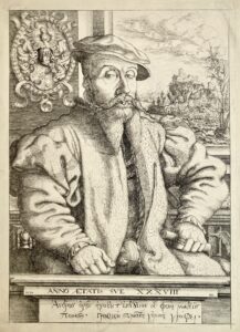 Hollstein nr 65 (II/II). Good impression of 2nd state (of 2). Some creases mostly on the corners; three or four very short marginal tears or incoming very slightly in the platemark, some reinforced. Small margins. Edition of the end of XVIth or beginning of XVIIth century. Watermark : standing bishop (?) and letter “CIV” (?).
