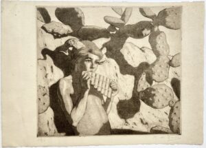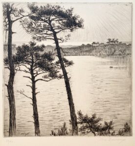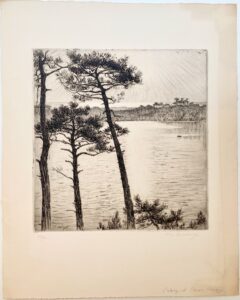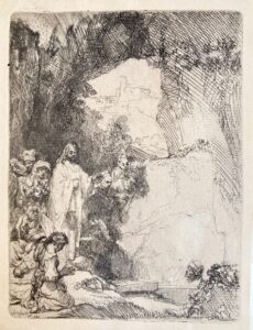 Robert-Dumesnil nr 32 (I/II). Thuillier nr 181 (II/II). Very good impression trimmed at the platemark, of first plate (of 2), fefore Weyen’s address deletion. Fixed by the corner on wove paper; small skinned paper areas in the sky and vertical fold at right. Last plate of the set of six “Landscapes”. Ex collection Robert-Dumesnil (Lugt […]