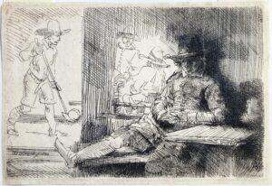 Hollstein n°5 (III/III). Belle épreuve coupée à l’intérieur du cuivre, de l’état définitif. Deux ou trois petits enfoncements restaurés (?) en tête, surtout visibles au verso; quelques traces de plis et légères petites épidermures. Tirage du XVIIIe siècle. Ex collection H. Weber (Lugt n° ).