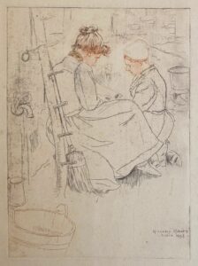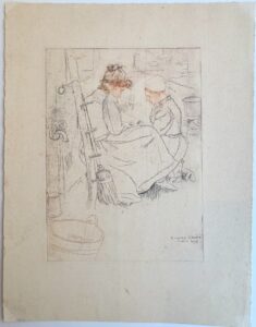 Richard RANFT – (Deux jeunes femmes assise dans une cour à Aubin), 1898