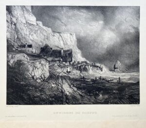 A. Curtis n°64 (II/III). Très belle épreuve sur chine appliqué sur vélin, du 2e état (sur 3), avant le changement dans la lettre. Traces de plis surtout marginales; petits défauts aux extrémités des marges. Planche de la suite des six « marines ». Timbre sec de V. Morlot, éditeur.