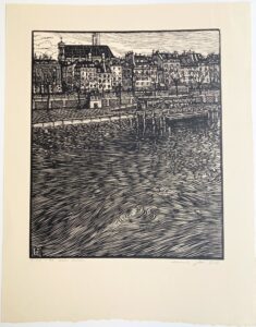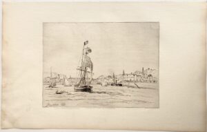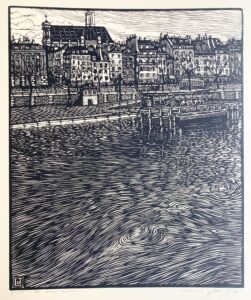 I.F.F. n°8. Très belle épreuve sur simili japon, justifiée, titrée signée et datée. Infimes traces de plis, notamment dans l’angle supérieur droit; restes de papier de montage au verso en tête. Belle marges. Tirage à 50 épreuves. Vue du quai de l’Hôtel de Ville à Paris avec l’église Saint Gervais en arrière plan.