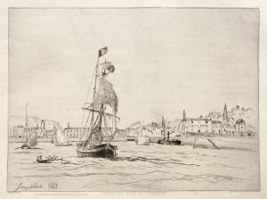 I.F.F. n°86-2. Très belle épreuve sur vergé publiée dans la “Société des Aquafortistes” en 1864. Légère oxydation sur les bords des marges; une légère petite cassure au centre, surtout visible au verso; quelques légères traces de plis marginaux. Grandes marges. Timbre sec des éditeurs Cadart et Luquet.