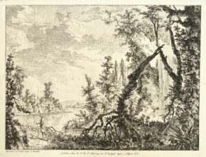 cf I.F.F. n°1-12 (lacune). Très belle épreuve. Planche d’une suite d’un “livre de paysages” comprenant douze planches. Oeuvre de jeunesse, notre gravure anticipe le paysage romantique de la fin du siècle et du siècle suivant.