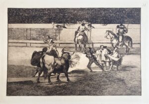 Harris n°234. Très belle épreuve sur vergé de la 3e édition (sur 7), publiée par Loizelet en 1876. Quelques légères traces de plis de manipulation; quelques infimes rousseurs marginales. Grandes marges. Planche de la suite de la “Tauromachie”.