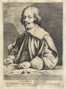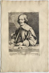 Lieure n°664 (II/II). Belle épreuve légèrement rognée du 2e état (sur 2), le numéro effacé. Nombreux petits manques et restaurations sur les bords, deux petits accidents dans le sujet; déchirure dans la lettre et dans l’angle supérieur droit.